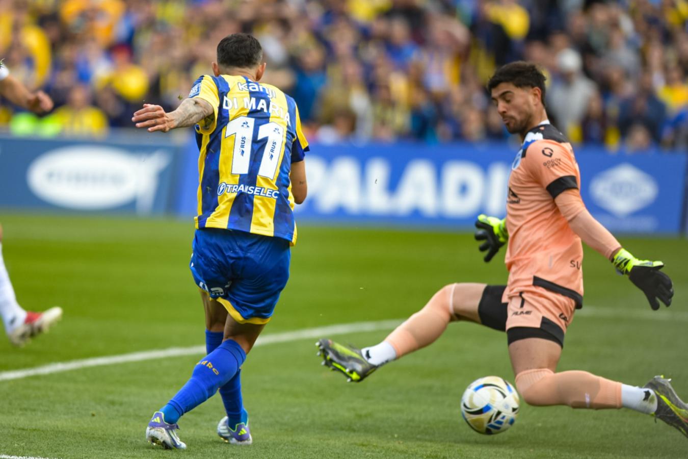 No faltaba mucho para el final del partido cuando el árbitro Pablo Dóvalo cobró penal para los locales por un muy leve agarrón del ingresado Daniel Barrea sobre Véliz. Por supuesto, Di María se hizo cargo y lo ejecutó con mucha clase para luego festejar revoleando su camiseta y besando el escudo. Su último festejo vistiendo los colores amarillo y azul había sido el 16 de julio de 2007, en la derrota del Canalla sobre Colón de Santa Fe por 3-1: él había marcado el empate parcial.