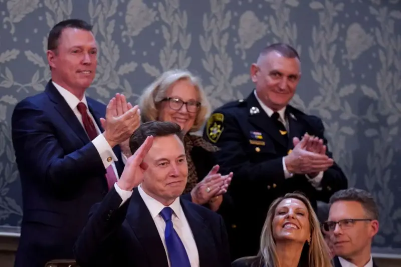 "Con ese fin he creado el nuevo Departamento de Eficiencia Gubernamental. Está encabezada por Elon Musk, quien está en la sala esta noche. Gracias, Elon. Está trabajando muy duro. Y él no necesitaba esto".