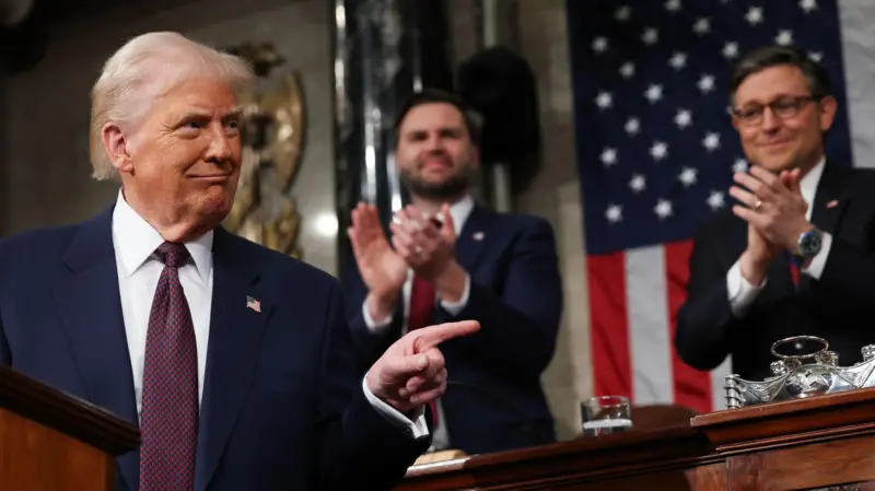 Flanqueado por Mike Johnson, presidente de la Cámara de Representantes, y el vicepresidente J. D. Vance en calidad de presidente del Senado, Trump aprovechó el discurso para exponer las prioridades de su mandato y repasar lo que considera ya logró su gobierno en las primeras seis semanas en el poder.