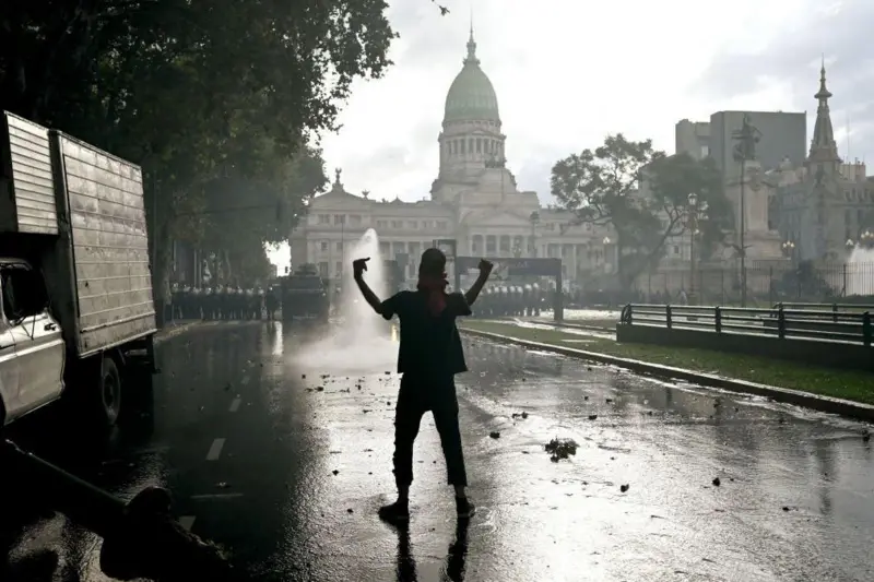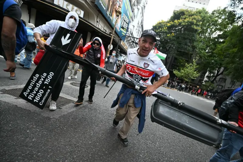 Pero este miércoles la protesta tuvo un elemento agregado que resultó explosivo: la presencia de cientos de simpatizantes de equipos de fútbol de un gran número de clubes argentinos, que decidieron movilizarse en apoyo de los jubilados.